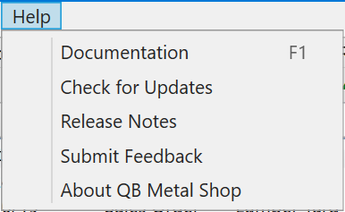 5. About QB Metal Shop (Displays information about the software such as the installed version)
