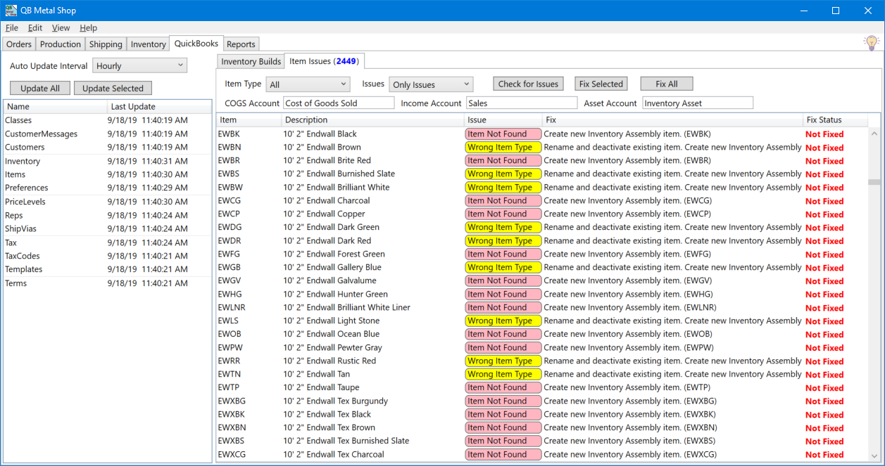 The QuickBooks tab is where communication with QuickBooks is viewed and managed.