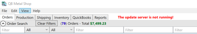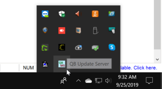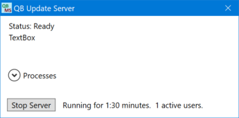 2. The QBMS Server program needs to be running on the server. Clicking the X to close the window minimizes it to the system tray, where it continues to run in the background. To stop the QBMS Server you need to click the Stop Server button